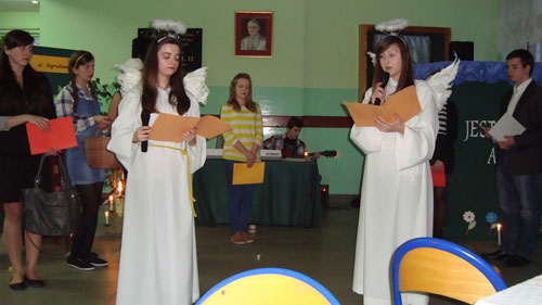 Dnia 7 marca 2013r w Publicznym Gimnazjum w Bukowie odbyła się wieczornica z okazji Dnia Kobiet. Uczniowie ze Szkolnego Koła Wolontariatu "Pomocna Dłoń" wraz z opiekunami: Anetą Banaś i Dorotą Wijas przygotowali dla wszystkich mam gimnazjalistów oraz pracowników szkoły spotkanie pod hasłem "Kobieta jest Aniołem", które rozpoczęła powitaniem zaproszonych gości dyrektor Agata Kapelusz- Derejska.