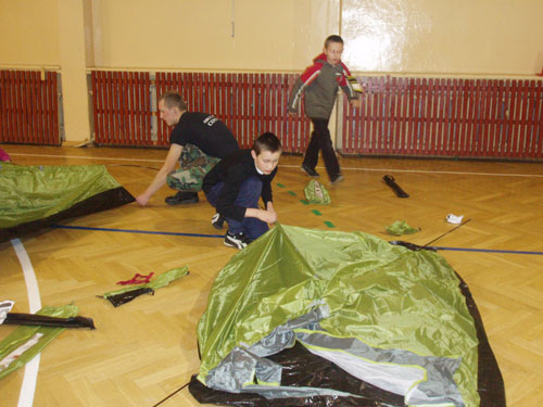 Po zakwaterowaniu i rozbiciu namiotów na sali gimnastycznej na druhów i druhenki czekała