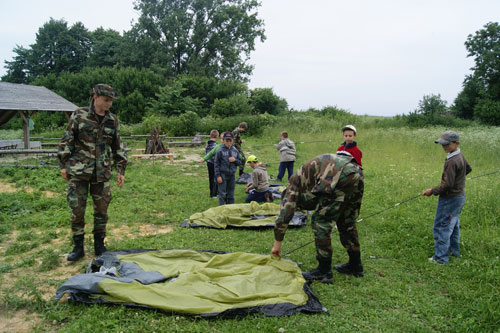 - inscenizacja obozu wojskowego - strzelanie z broni, gry i zabawy sprawnościowe terenowe.