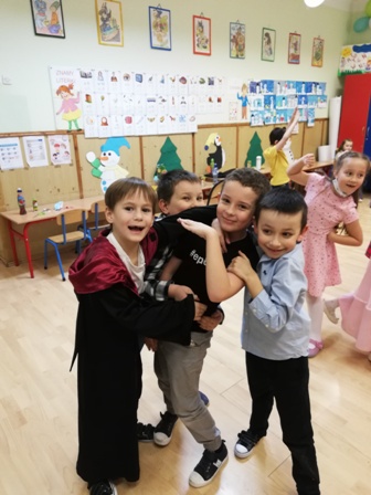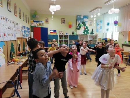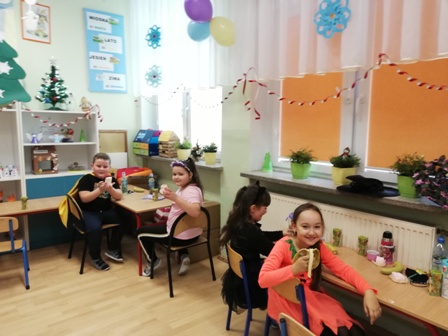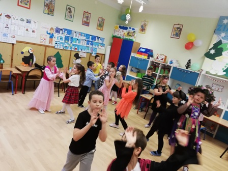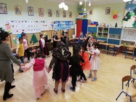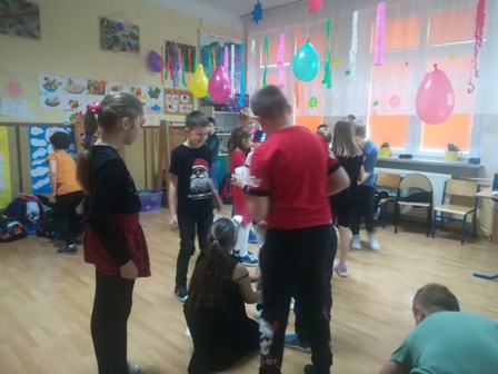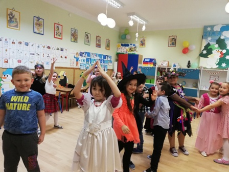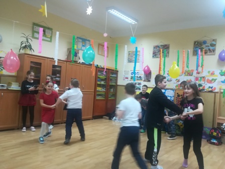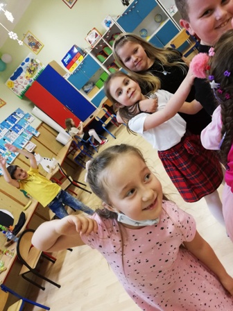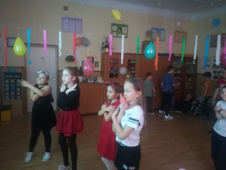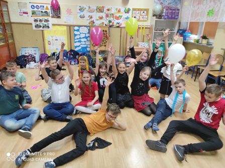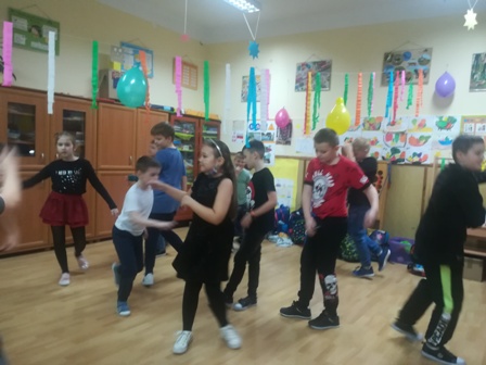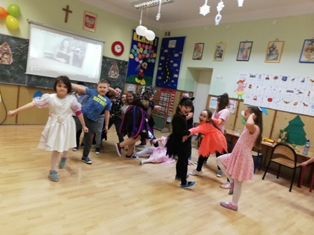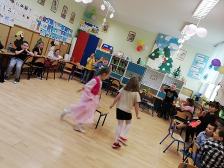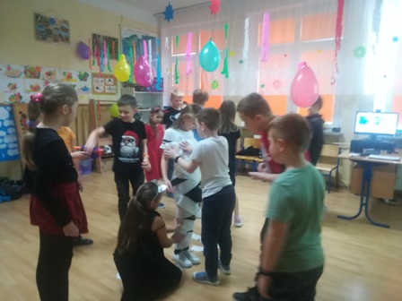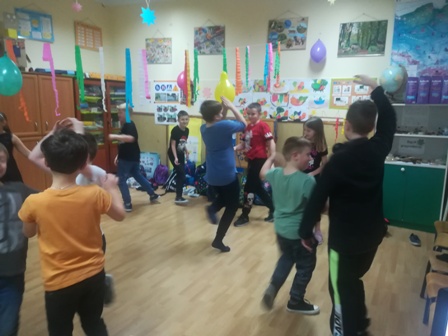 Karnawałowy dla klas I-III. Ze względu na okres pandemii, każda klasa bawiła