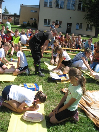 dzieci) i defibrylacja . Dzieciom pokazano także jak układa się
