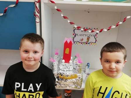 wykonali prace plastyczne – wiatraki oraz koguciki.