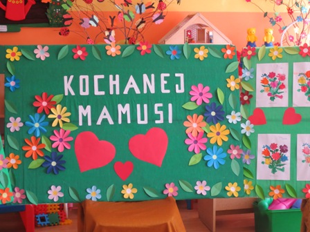 laurek oraz serdeczne życzenia przekazane mamom przez dzieci. Na